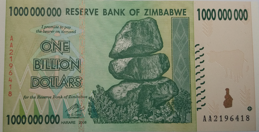 Banknote 1'000'000'000 Dollars (englisch: one billion dollars) Land: ZimbabweZustand: ungefaltet