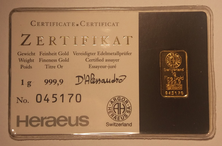 Legierung: Gold 999/1000Gewicht: 1 g>> Rückseite mit Hollogramm-Effektnur 1 x lieferbar