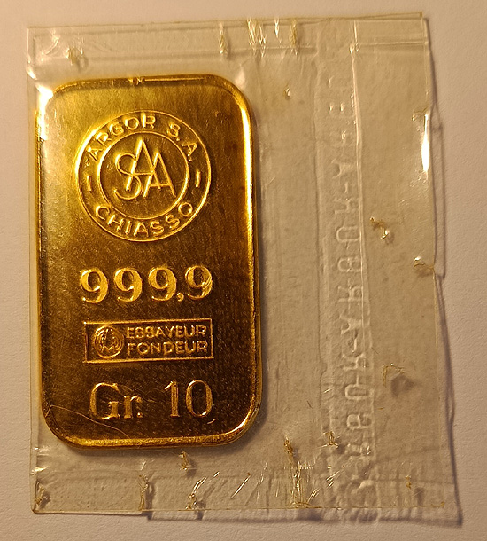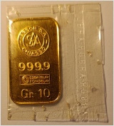 Legierung: Gold 999/1000Gewicht: 10 g>> hat ein paar angelaufene Flecken (siehe Foto) nur 1 x lieferbar