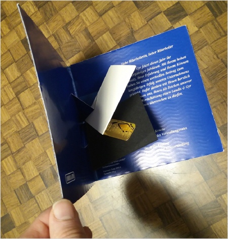 Legierung: Gold 999/1000Gewicht: 20 g>> im speziellen Folder aufklappbar! siehe Fotos! Aussen vom Folder sieht es so gewellt aus wie auf Foto. AUSVERKAUFT / SOLD OUT