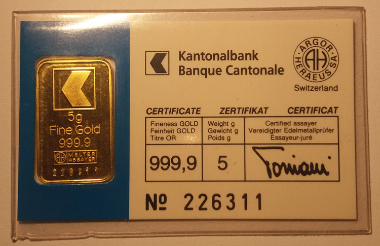 Legierung: Gold 999/1000Gewicht: 5 g>> mit Hologramm-Effekt auf Rückseitenur 1 x lieferbar