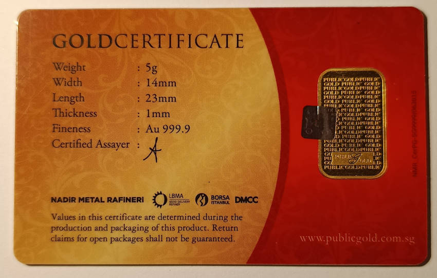 Goldbarren 5 Gramm Public Gold G01401