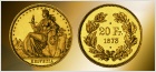 Die Schweizer wollten am Ende des 19. Jahrhunderts auch eine eigene schöne Goldmünze prägen lassen; denn es zirkulierten damals in der Schweiz nur ausländische oder kantonale Goldmünzen. Im Jahr 1873 wurde eine sitzende Helvetia als Probe geprägt mit 3 Punkten auf der Wertseite. Die Auflage wird auf ca. 1000 Stück geschätzt, das heisst, es sind viel weniger Münzen davon im Umlauf als zum Beispiel vom 100-Franken-Goldvreneli.