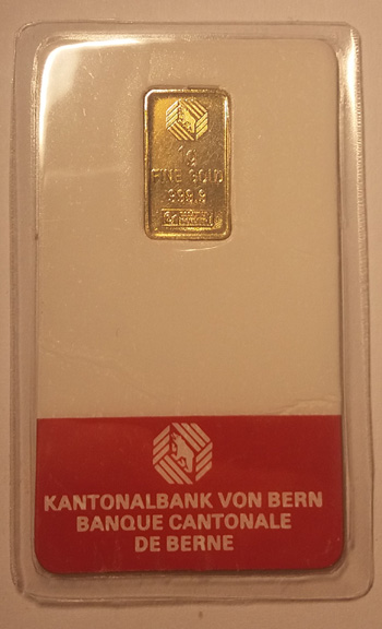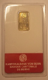 Goldbarren 1 Gramm Kantonalbank von Bern ohne Nr