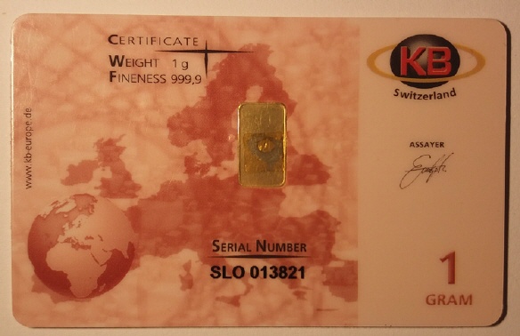 Goldbarren 1 Gramm KG Switzerland SLO 013821