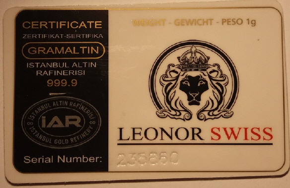 Goldbarren 1 Gramm LEONOR SWISS Istanbul