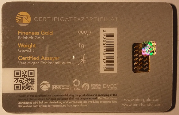 Goldbarren 1 Gramm PIM P43863
