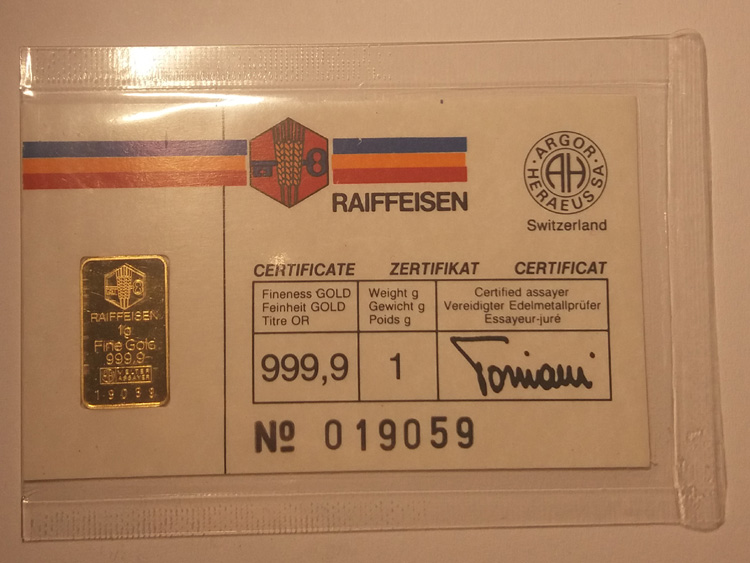 Goldbarren 1 Gramm Raiffeisen 019059