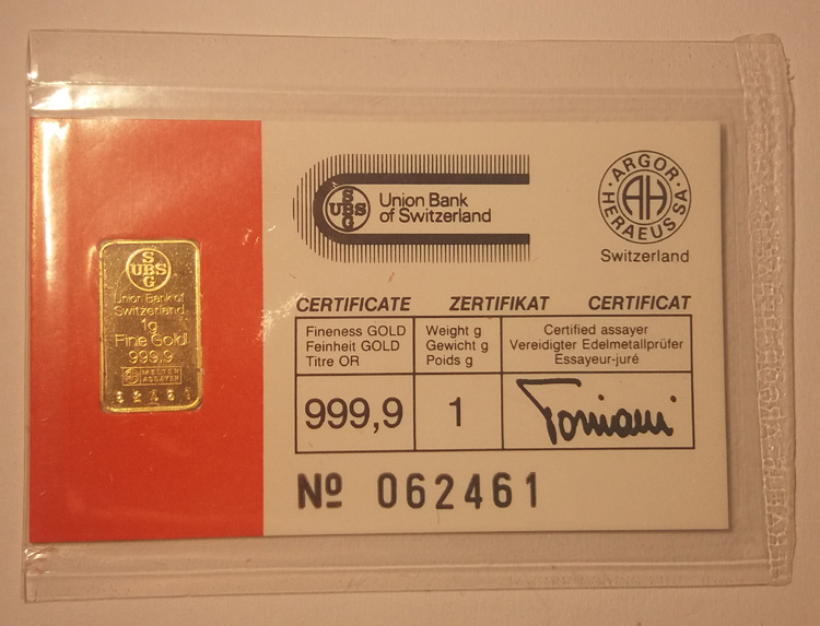 Goldbarren 1 Gramm UBS SBG 062461