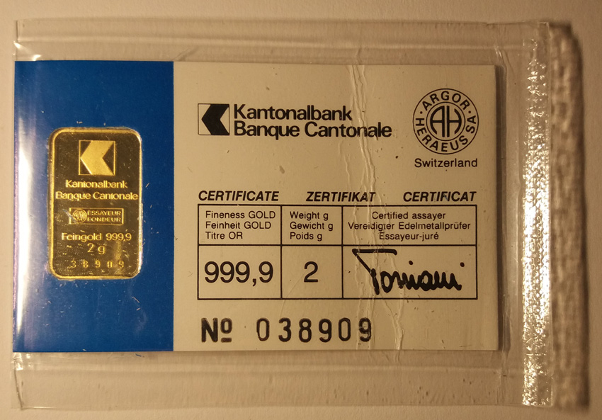 Legierung: Gold 999/1000Gewicht: 2 g>> Kartonverpackung ist zerknittert siehe Bildnur 1 x lieferbar