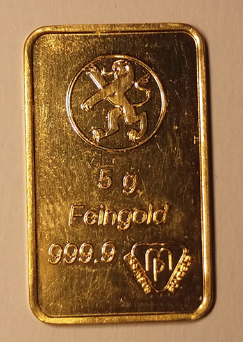 Goldbarren 5 Gramm Bank Leu ohne Packung