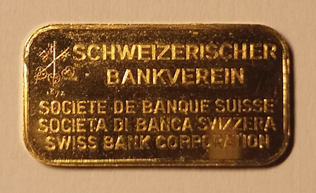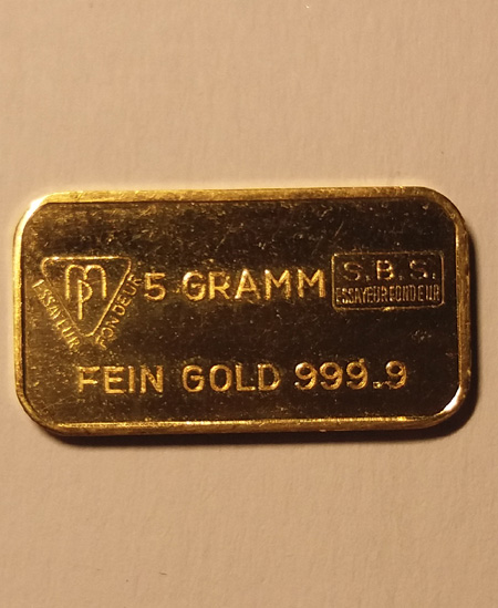 Goldbarren 5 Gramm Schweiz. Bankverein ohne Nummer