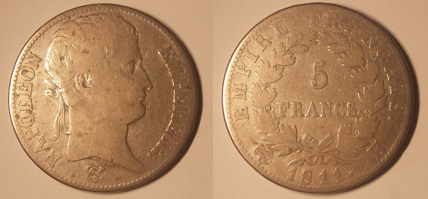 Silbermünze Frankreich 5 Francs Napoleon 1811