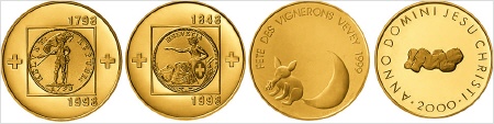 Kaufen Sie die Serie aller 100-Franken Goldmünzen 1998 bis 2000 (4 Münzen) zum Sonderpreis. (ohne Sammel-Etui) für nur Fr. 13'000.-- statt Fr. 13'220.--