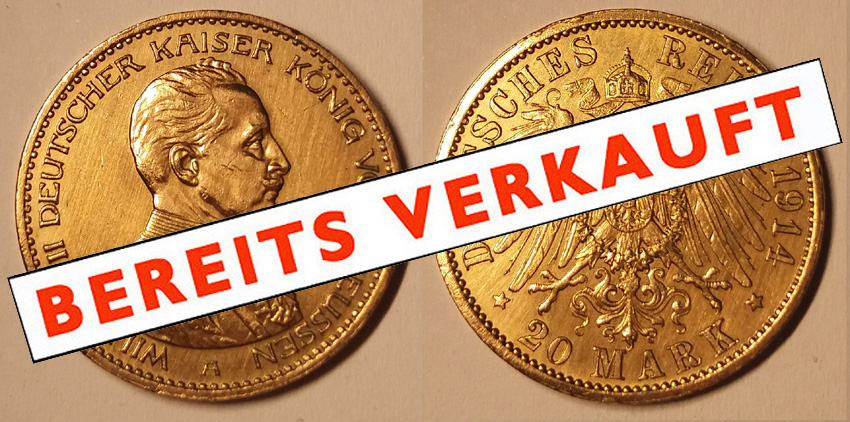 Goldmünze Deutsches Reich 20 Mark 1914 Wilhelm II.