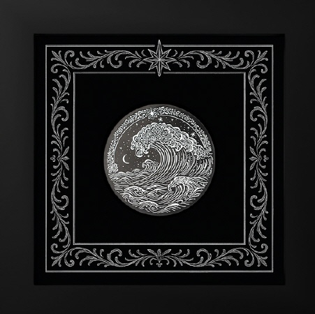 Manchmal genügt eine einzige Bewegung, um enorme Kraft auszudrücken. Das Design dieser aussergewöhnlichen Münze ist inspiriert vom japanischen Bild „Die grosse Welle vor Kanagawa“, dem berühmten Holzschnitt aus dem 19. Jahrhundert. Sie fasziniert mit dem markanten Zusammenspiel aus tiefschwarzem Obsidian Black und den kunstvoll herausgearbeiteten Linien einer Welle. Durch den innovativen nanoshine-Effekt erscheinen die geschwungenen Formen nun noch lebendiger, reflektieren Licht in feinen Nuancen und verleihen der Welle eine fast fliessende Dynamik.