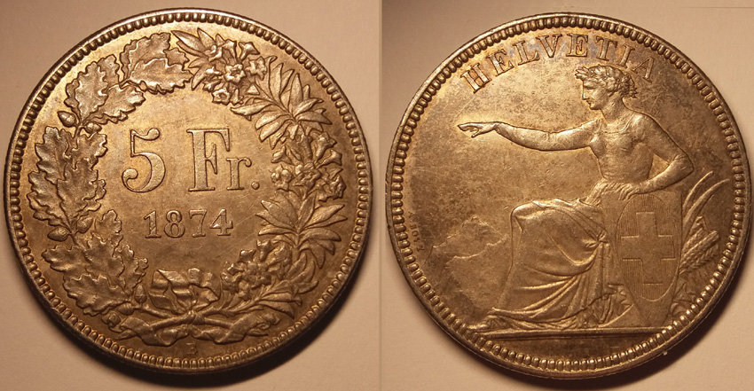 5 Franken 1874 B ohne Punkt