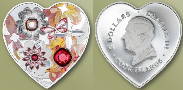 Diese aussergewöhnliche Münze in Herzform mit klassischer Prägung vereint künstlerisches Flair mit modernem Design.