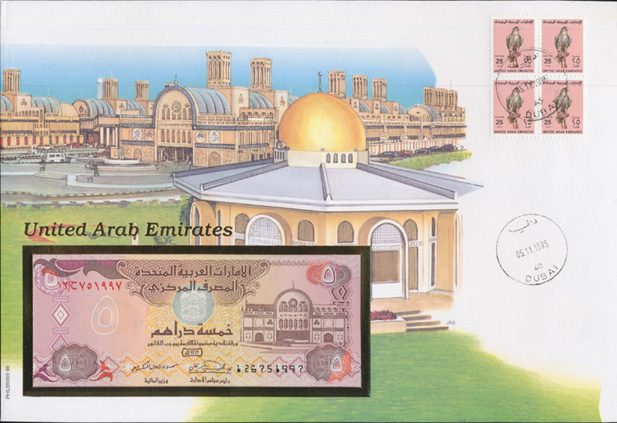 Brief aus der Sammlung "Banknotenbriefe aus aller Welt" mit je einer ungefalteten Banknote und gestempelten Briefmarke aus dem jeweiligen Land.