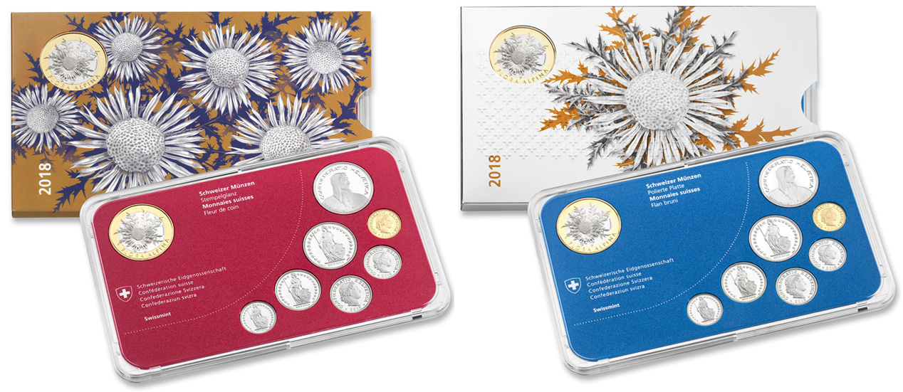 Münzsatz 2018 mit 10 Franken Bimetallmünze "Flora Alpina - Silberdistel"
