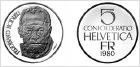 1974 wurde die Gedenkmünzenprägung wieder aufgenommen, nun aber mit Fünflibern aus Kupfernickel. Die Serie wurde bis 1990 mit jährlichen Ausgaben fortgeführt; 1979, anlässlich des hundertsten Geburtstages Albert Einsteins, erschienen zwei verschiedene Münzen.