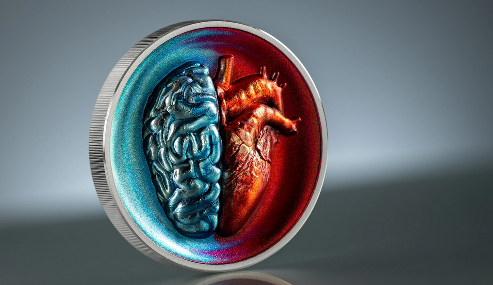 Jeder Mensch erlebt Momente, in denen Herz und Verstand im Widerspruch zueinander stehen. Die Logik drängt auf einen Weg, während die Gefühle in eine andere Richtung ziehen. Diese fesselnde Münze verkörpert diesen universellen inneren Kampf durch ihr einzigartiges Design, ihre Form und ihre leuchtende Farbgebung.