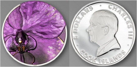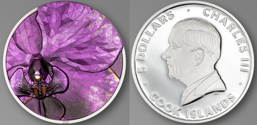 Ein weiteres herausragendes Merkmal ist die polygonale Struktur, die sich wie ein feines, geometrisches Netz über die Blütenblätter legt. Diese Low-Poly-Elemente verleihen der Münze eine moderne, kristalline Ästhetik und schaffen ein faszinierendes Zusammenspiel aus natürlicher Form und präziser Geometrie. Die Auflage dieser Edition ist auf 999 Stück limitiert.