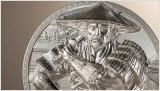 Diese Münze in Ultrahochrelief zeigt auf aussergewöhnliche Weise die filigranen Details der Rüstung und den entschlossenen, Furcht einflössenden Blick des Kämpfers, der ihn zu einem sehr realen Gegner macht. Und das Ganze in Polierten-Platten-Qualität und mit partiellen nanoshine-Elementen.